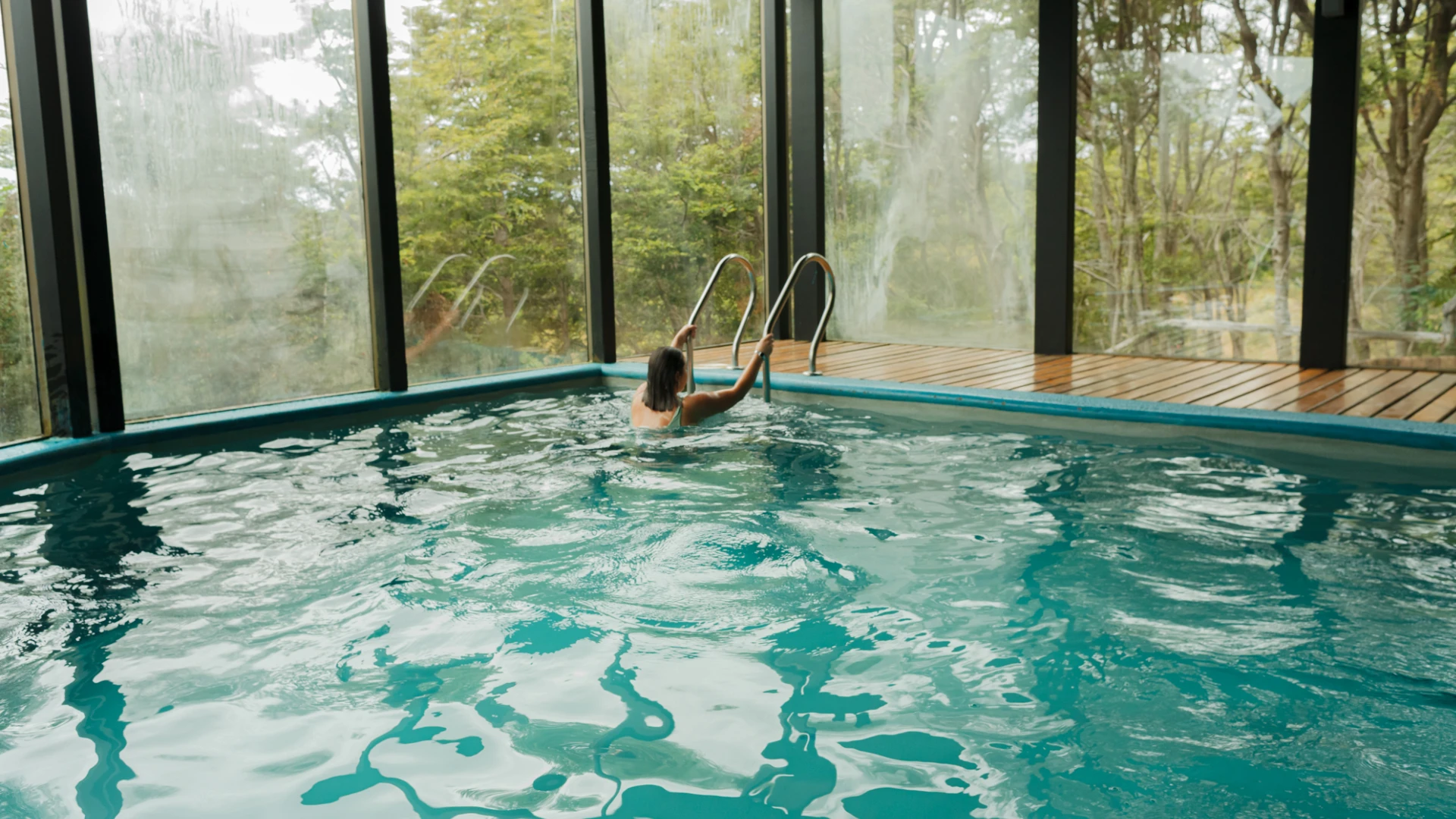 Tinajas exterior con agua caliente (38°C).